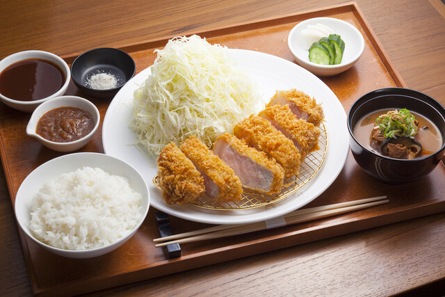 そのほか「チキンカツ」のみや「肉汁あふれる和牛メンチカツ」、チキンカツ、上ヒレ、和牛メンチの3つが揃った「肉ミックス」などがあり、いずれもごはんと豚汁、香の物、キャベツ付きで、ごはんはおかわり可能。