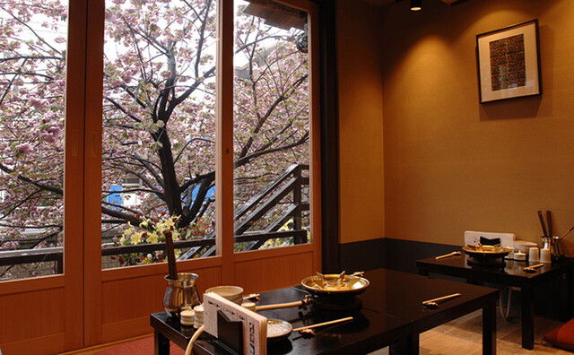 川沿いの八重桜は桜前線の基準になるソメイヨシノよりも少し遅い開花となるので、開花予報を確認しながらの予約をおすすめする。ワインや焼酎、日本酒などお酒の種類も豊富なので、美味しい水炊きと美味しいお酒でお花見を堪能してみては?