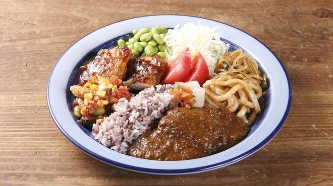 カレーには種類の豊富な色とりどりの野菜がトッピングされている。中には1皿で1日分の野菜が摂れるというメニューもあり、ヘルシー志向の人にもおすすめの店だ。電車に乗る予定がない場合には利用しにくいが、カレーを食べるために入場券を買って来店する人も多いという。カレーは5段階で辛さが選べ、スキレットで運ばれてくるためアツアツが食べられるところが魅力。