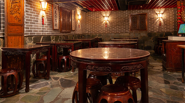 木目調のインテリアや装飾品は、まるで本場中国にいるかのような雰囲気。少人数から大人数まで楽しめるテーブル席から完全個室までを完備しており、さまざまなシーンで利用することができる。