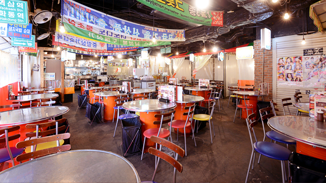 韓国の屋台の雰囲気そのままに楽しめる人気店として多くのファンを獲得している。都内だけでもいくつか店舗があるが、池袋店限定でリーズナブルな「お肉、韓国料理食べ飲み放題」(120分)のコースがるのでお見逃しなく。大人気のサムギョプサルをはじめ激辛鶏もも焼きやチャプチェ、チヂミなどたくさんのメニューが食べられる。
