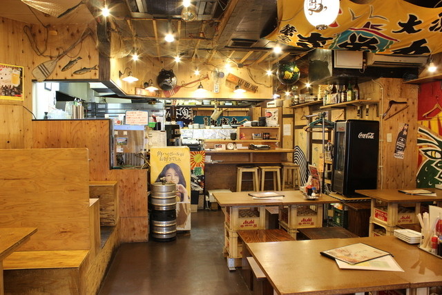 大漁旗が飾られた店内は、まるで海の家にでも来たかのようにあちらこちらから磯の香りが漂う。店内は活気があり、いつでも賑わっており楽しい雰囲気に包まれている。浜焼きに飲み放題を付けても4,000円でお釣りがくるコスパ抜群の店だ。寿司以外の魚介の食べ放題店は店舗数が少ないため、貴重な存在だ。
