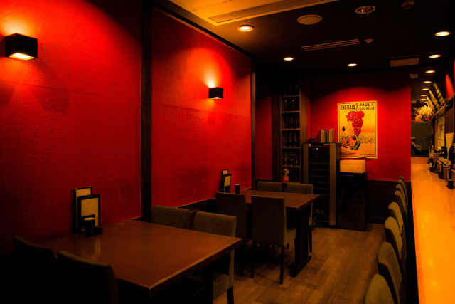 焼き鳥とワインが絶妙なコラボレーションを果たした、「焼き鳥屋」のイメージを払拭するような非常におしゃれな人気店だ。赤を基調とした和モダンな空間は女子会やデートにもぴったり。