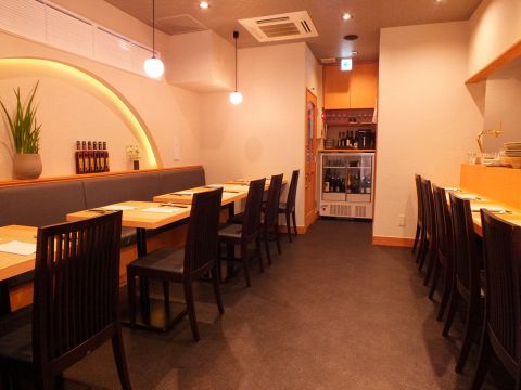 木目の看板に暖簾、小洒落た外観は、一見するとインド料理店には見えないだろう。食材は、築地市場から厳選して仕入れたものを使用している。野菜と米は、福岡の筑紫平野で自然栽培したものを取り寄せているため、どの料理を頼んでもハズレはない。テーブル席のみの店内には落ち着いた大人の雰囲気が漂っているので、落ち着いたランチタイムを過ごせるはずだ。