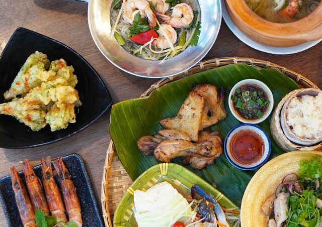 ランチメニューは全品にサラダ・スープビュッフェがついてくるシステム。居心地の良い店内でゆったりとランチを堪能しよう。特におすすめは、平日ランチ限定のワンプレート屋台ランチ。10種類のタイのおかずの中から好きなものを、2種、3種、5種、と選ぶワンプレートランチだ。