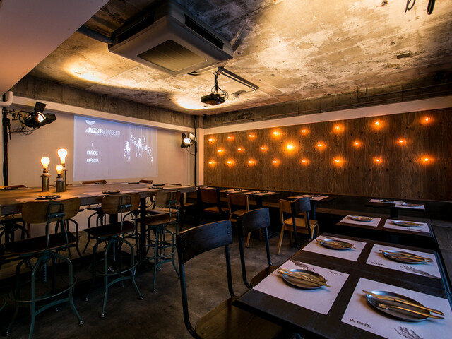 キッチンの中で食べているような感覚のシェフズテーブル席や、まるで映画のセットのようなおしゃれなテーブル席も用意しているので、パーティーや女子会にも最適な空間となっている。
