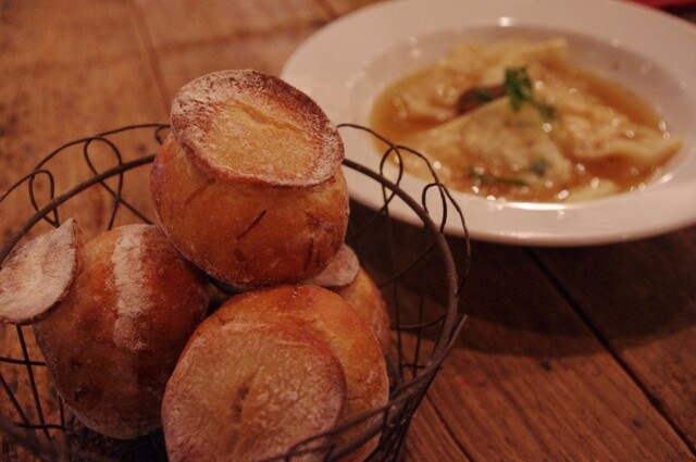 各線吉祥寺駅南口から徒歩3分、ドン・キホーテの脇を少し入ったところに店を構えるビストロ。梁がむきだしの少しラフな雰囲気の店内は木の温もりに溢れ、白い壁とのコントラストが印象的。おしゃれな店内で楽しめるのはシェフが腕によりをかけた料理とおいしいパンの数々だ。
