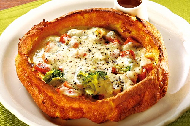 真ん中のくぼみにたっぷりのチーズと野菜を中心とした具材を入れた「ダッチ・ガーデン」(1,793円)が人気。メニューがとても豊富のため数種類を頼んでシェアするのもおすすめだ。