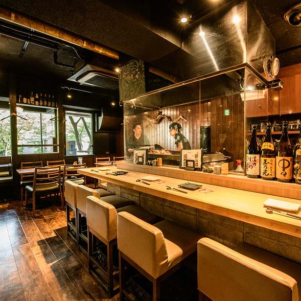 2フロアの総座席数91の店内は、さまざまなタイプの座席が。2階のカウンターは、目の前で焼き姿が眺められるおしゃれ居酒屋な雰囲気。一方3階のカウンターは、デートにぴったりなバーの様な雰囲気に。