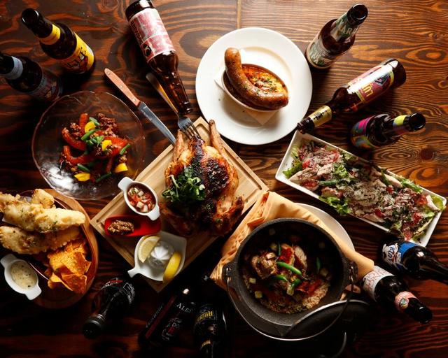 何人かで利用するなら、クラフトビール10種を含む50種類以上のドリンクが飲み放題で、自慢のロティサリーチキンやアラカルト料理が付く5,500円のコースがおすすめです。