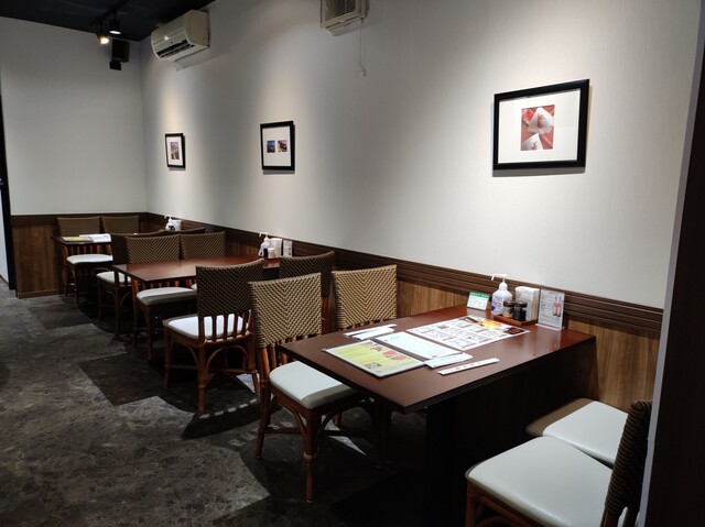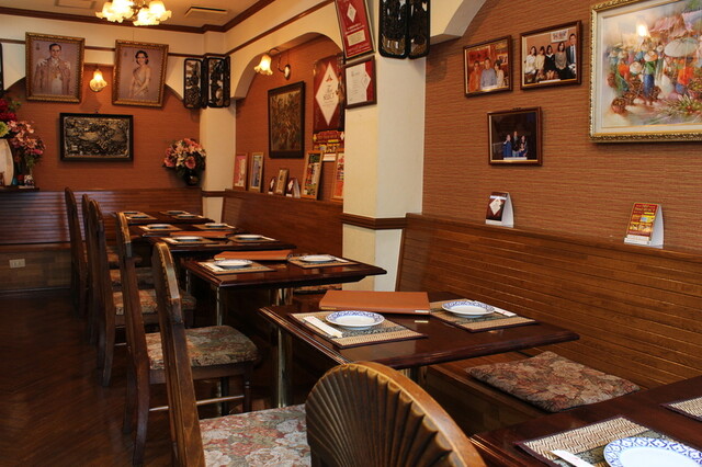 タイの伝統工芸品などが飾られたエキゾチックな雰囲気でスパイスの香りが漂う広々とした店内には、テーブル席のみを設置。多数のメディアにも取り上げられ、ランチタイムやディナータイムには満席になることも多いため、事前の予約がおすすめ。