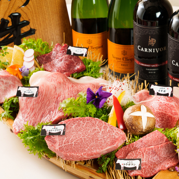 生産者から一頭買いしているお肉は、最高品種の山形牛処女雌牛A5ランク。お店の名物ともいうべき自慢の一皿は、「山形牛一頭盛り」。様々な部位を一度に食べ比べることができる豪華な盛り合わせとして一番人気のメニューだ。