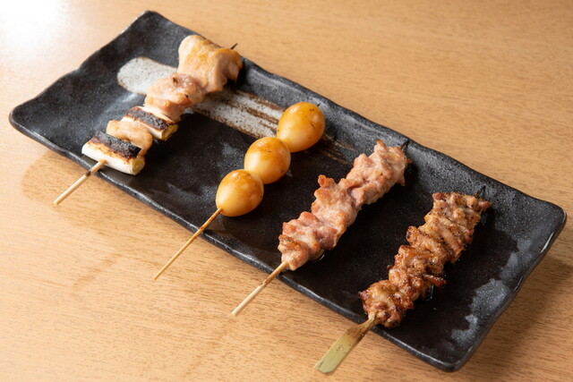 「信州安曇野産の朝いち鶏」を使用していて、串焼きや揚げ物、一品料理で味わえる。備長炭で焼き上げている串焼きは、1本からでも注文ができるので、いろんな種類を食べられる。