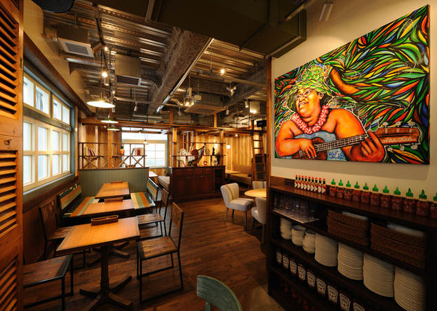 駅チカながら全75席と大きな店内は、本場ハワイを想わせるつくり。雑多感がなく、インテリアの色味や風合いが統一されているので、落ち着いてプライベートの時間を堪能することができる。