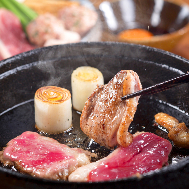 この店に来たからにはぜひ食べてもらいたいのが定番の「鴨すきコース」。鴨すきはオープン以来変わらない店のスペシャリテであり、鉄鍋で香ばしく仕上がった鴨肉と季節の野菜を特製の割り下にくぐらせていただこう。