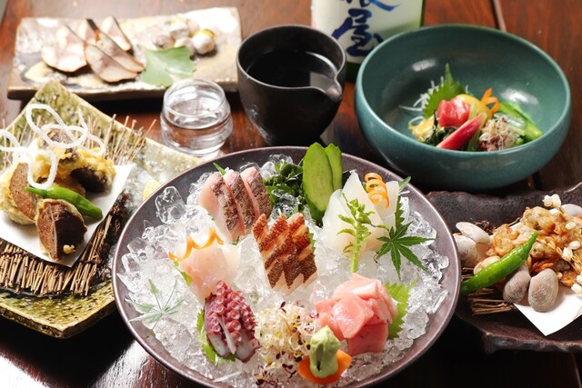 こちらのお店で1番人気を誇るメニューが、「魚箱(お造り)5点盛り」だ。おすすめの地魚4種類+本マグロのお刺身という大満足の内容で、ほとんどのお客さんが頼む看板メニューとなっている。