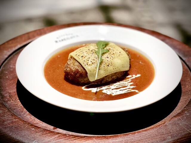 フレンチシェフだからこその見た目の美しさにもこだわったハンバーグは、ここでしか食べられないスペシャルなメニューだ。