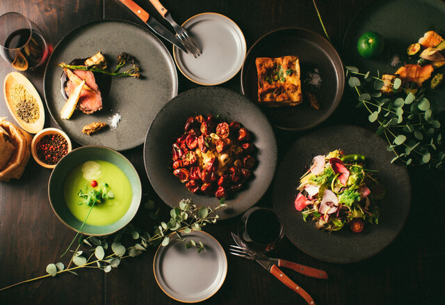 和食、フレンチ、アメリカンなどの複数の食文化をコラボして、多国籍な「東京らしさ」を表現して提供している。特に注目のメニューは牛肉を使ったもの。