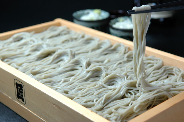 布海苔(ふのり)という海藻を蕎麦のつなぎに使用して作る「へぎそば」は、強いコシとつるっとした喉越しの良さが特徴的な新潟県発祥の蕎麦。美しい盛り付けにも注目だ。カウンター席であれば、職人たちの手際のよい盛り付けが見られて楽しい。