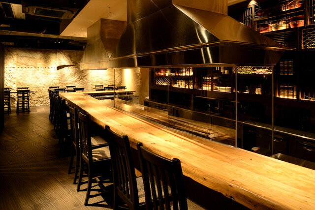 2名からでも使用できる個室席が用意されているため、特別な記念日や接待にもおすすめ。ほかにも活気とライブ感が楽しめるカウンター席や、間接照明がオシャレなテーブル席などもあり、様々なシーンに使えるのが魅力。