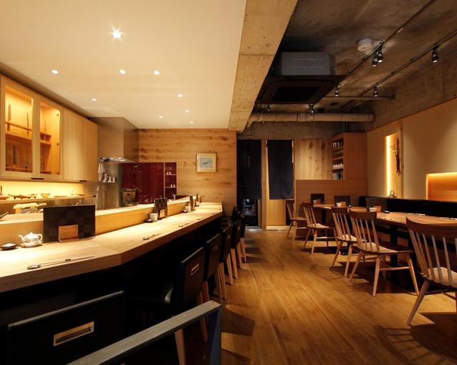 明るい色合いの木材をふんだんに使用し、上品でモダンな印象のある店内は、誰もが好印象を持つことだろう。広く立派なカウンター席や、カジュアルに楽しみたいときに便利なテーブル席のほかに、デートに使用したいような明るくオシャレな個室席が用意され、多用途に使える店。