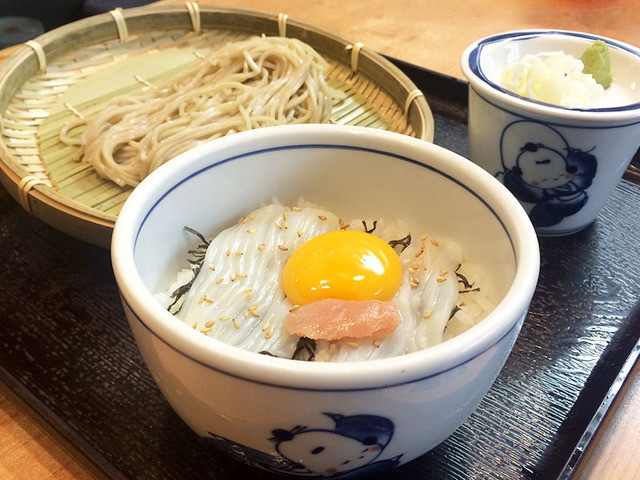 そばは自家製麺でつるつるとしている。全体的に量は少なめ。出勤前にお得なのが朝限定のモーニングセットだ。メインはそばとご飯。そばはかけともりを選べる。生卵があるのでご飯にかけてもそばに入れてもいい。