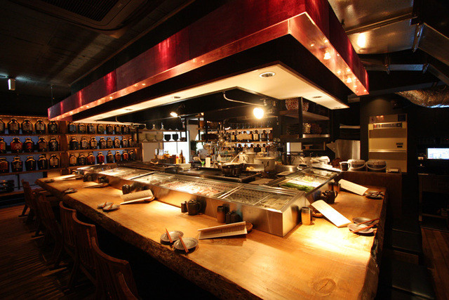 最初にご紹介するのは、各線渋谷駅から徒歩8分ほど、道玄坂の百軒店商店街にある「ジョウモン」。六本木や渋谷など都内を中心に5店舗展開する「ジョウモン」は、串焼きやもつ鍋といった博多料理を提供する人気居酒屋だ。