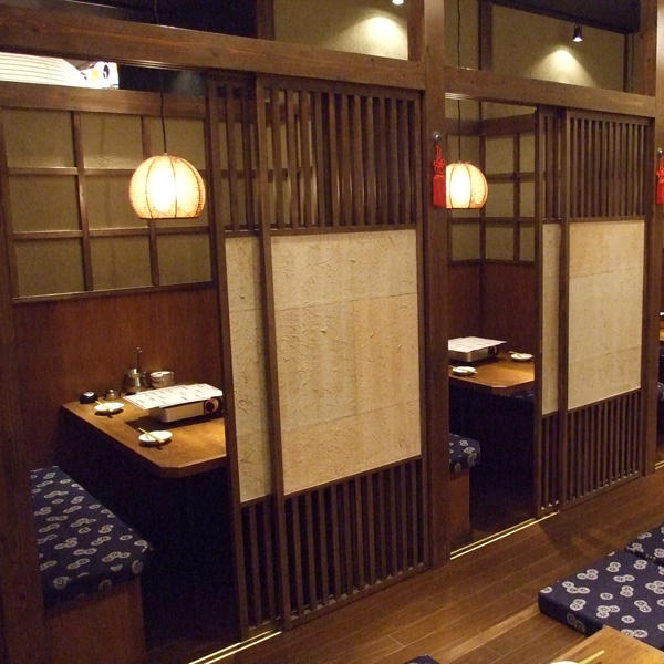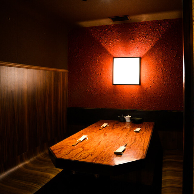臨場感たっぷりのオープンカウンターや、テーブル席は暖簾を下げることで半個室としても利用可能。デートや接待、仕事帰りの普段使いにもおすすめだ。