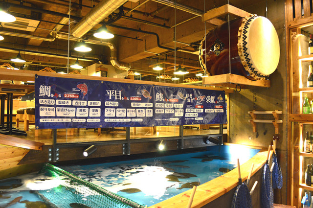 お店の中で釣りが体験できて、家族や友達、忘年会で楽しめる居酒屋!