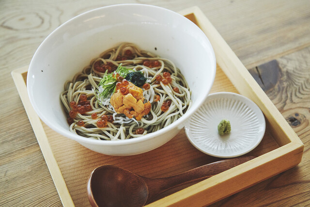 店内ですべて手打ちするそばは、定番の「せいろ」から、「しらすと生うにとイクラのまぜ蕎麦」といった変わり種まで幅広いラインナップを誇る。