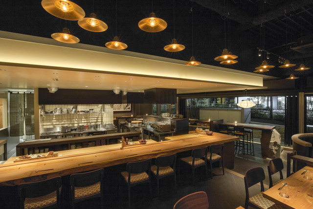 広大なダイニングスペースには、カジュアルなテーブル席に、デートにぴったりなオープンキッチンのカウンター、さらにはバースペースやテラス席までを完備。