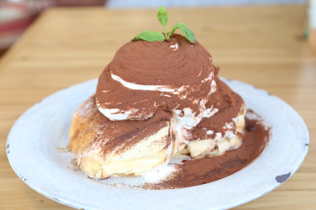 中でも1番の人気を誇るのが、スフレタイプの「ティラミスパンケーキ」(1,380円)。カフェの強みを活かし、ラテにも使用しているエスプレッソソースを、北海道産のマスカルポーネとマッチさせた一品。