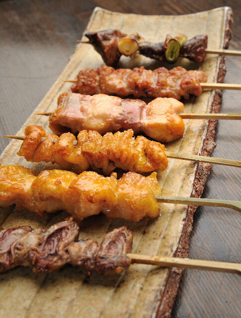 串焼きは白レバー串 (490円)、砂肝串焼き (480円)、ぼんちり串焼き (480円)と内臓系のメニューが人気となっている。ただしこれらのメニューは数量限定。売り切れてしまうことが多々あるので早めの時間に訪れた方が良いだろう。