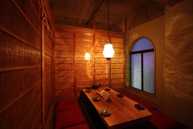 和モダンでおしゃれな店内には、デートにぴったりなカウンター席のほか、掘りごたつ式の完全個室も完備している。