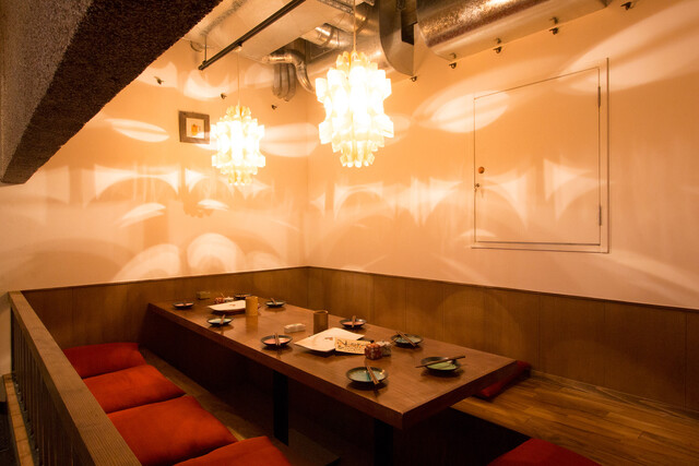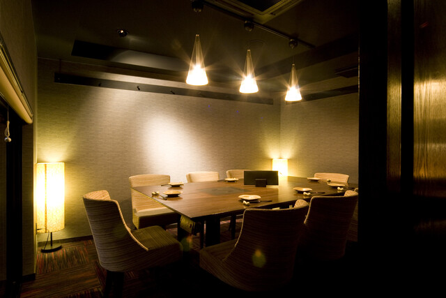 おしゃれなバーカウンターから、完全個室もテーブル席と掘りごたつ席を用意しており、接待や大切な人とのデートにもぴったりな大人な空間となっている。
