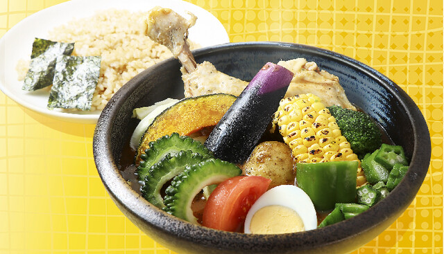 1皿に100gものたっぷり野菜を使用した濃厚でコクの強いスープカレーは、他店よりもマイルドな味わいになっているので、普段スープカレーを召し上がらない方やお子さんでも召し上がれるほど、食べやすい。中でもおすすめは、「チキンと一日分の野菜20品目」(2,255円)だ。