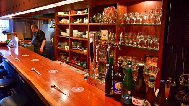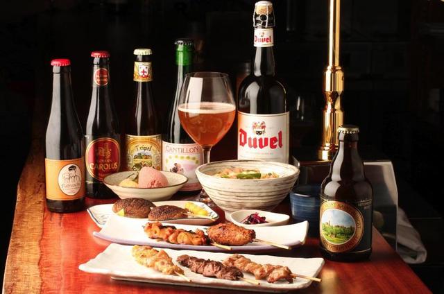 この店の特徴はもうひとつあり、いろいろな種類のベルギービールを飲めること。焼き鳥によく合う、と店主が厳選した30種類以上のリストをチェックし、飲み比べてみよう。
