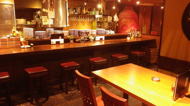 店内に入って最初に出迎えてくれるのは、人よりも大きい仏様だ。タイの作家の作品が飾ってあり、バンコクガーデンでしか見ることができない。店内は上品で落ち着いた雰囲気をしている。キレイで上品な印象があるため、女子会やデートスポットとして利用する人も少なくない。