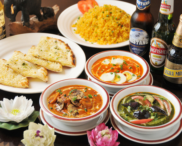 ナン食べ放題が付いているコースもあるが思ったより食べれないのでバランスを考えて楽しもう。単品料理はサモサ、タンドリーチキン、カレー各種、ロティと言ったインド料理が提供されている。