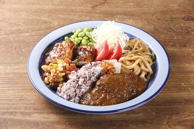 野菜とスパイスを売りにしているお店でメニューは、タマネギ丸ごとスパイシーカレー(950円)、ラム肉仕立てのオニオンカレー(1000円)、いろどり野菜を食べるカレー(1100円)など。プラスでチーズや野菜のトッピングが可能。