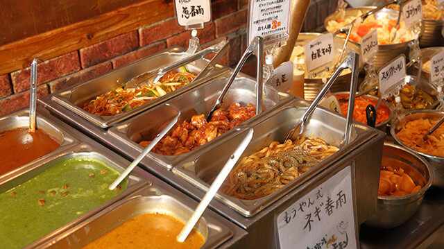 ランチはビュッフェ形式のメニューのみ。複数種類のカレーが用意されており、ライスやサラダの種類も充実している。辛いカレーも用意されており、本当に辛い。辛いというより食べると痛い。好きな人は好きかもしれないが、苦手な人が食べると大変なことになる。