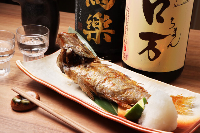 「魚たか」という名の通り、自慢の魚介料理はどれも絶品。炭火でじっくり焼いたのどぐろの一本焼きは、とろけるような口当たりです。居酒屋定番のホッケの開きも絶妙な塩加減で、ふっくらとした身から脂の旨味があふれ出します。