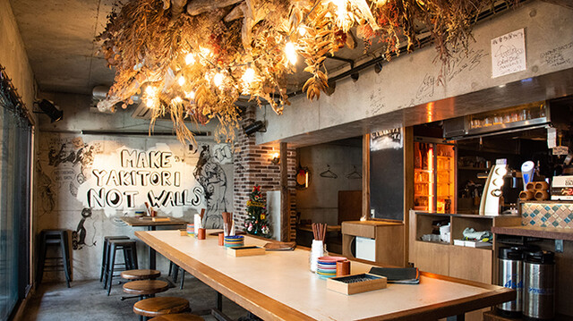 「コスパ抜群!」と口コミでも人気が高い「charcoal grill & bar GARAKUTA-YA 我楽多家」。インスタ映え抜群のおしゃれ空間で、手仕込みの炭火串焼きや一品料理を楽しめます。