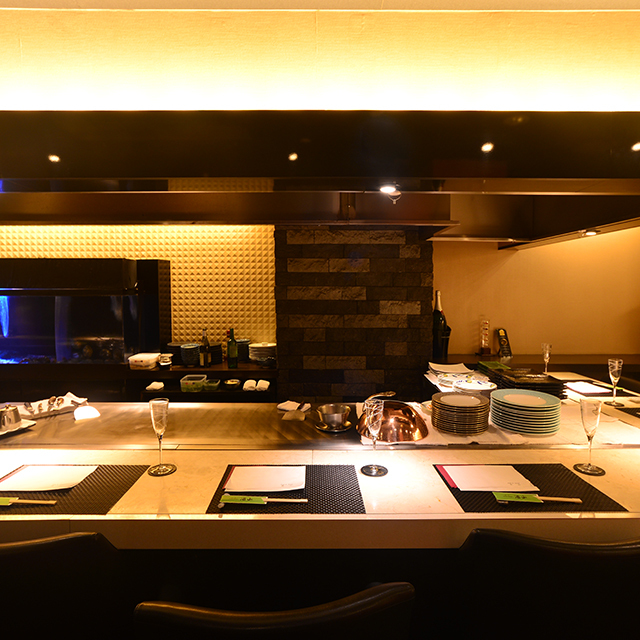 鉄板焼きステーキ湛山は、世界各国の食材を贅沢に使用したフレンチ料理がベースの鉄板焼き屋である。店内は落ち着いた雰囲気があり、大きな鉄板が備わったカウンター席から個室も使用することができる。
