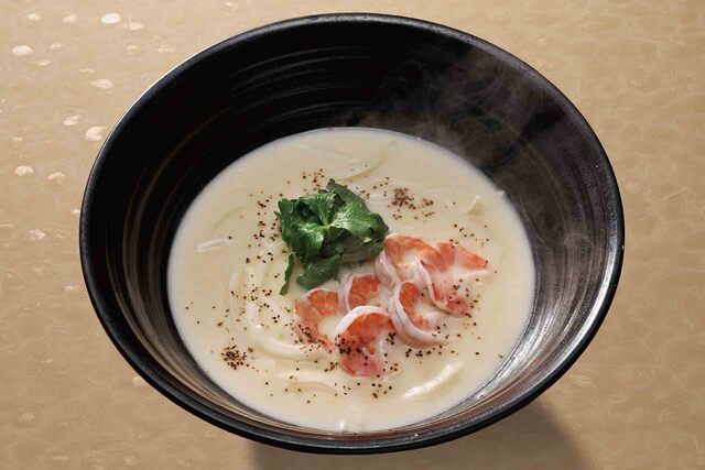 こちらのお店では、「黒酢あんかけうどん」や贅沢な「三重県産蛤のうどんすき」といったうどんメニューを取り揃えている。