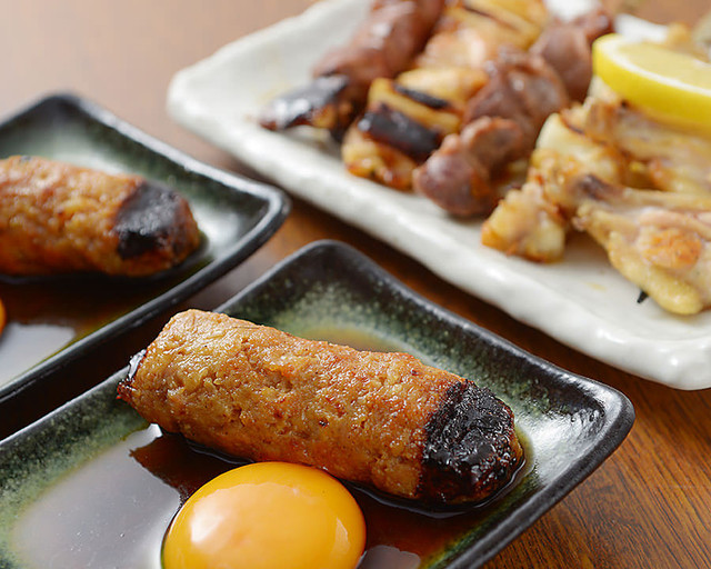 つくねは卵黄につけて頂くのがおすすめ。濃厚な卵黄とつくねからあふれ出る肉汁が、より濃厚な味わいへと変化させるため絶品だ。