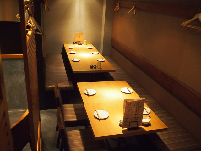スタイリッシュで落ち着いた印象の店内には、プライベート感を大切にした半個室のテーブル席と、掘りごたつ式の個室を完備。誰にも邪魔されない二人だけの時間が作れるのでデートにもぴったりだ。