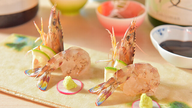 おすすめの「活け車海老」は、生きている新鮮な状態から調理する為、生の食感や味わいを最大限に感じられる。刺身・天麩羅・炉端焼きから好みの調理法を選べるのも嬉しい。