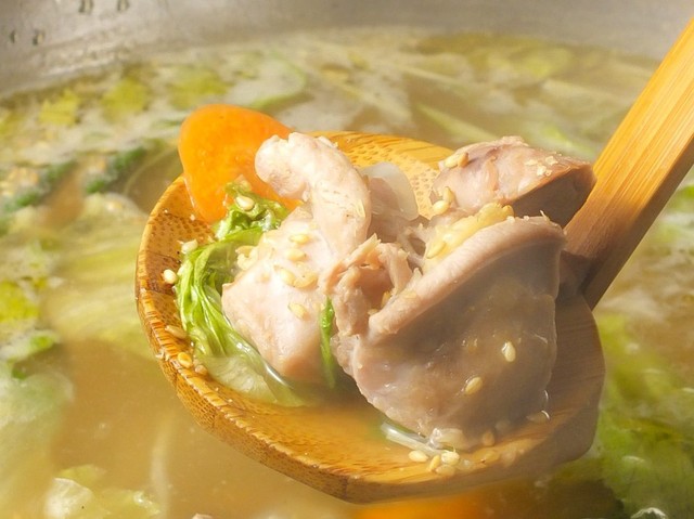 こちらの看板メニューである濃厚な「水炊き鍋」は、カウンターのお客さん限定で1人前~オーダー可能なので、一人飲みのお供にも最適だ。