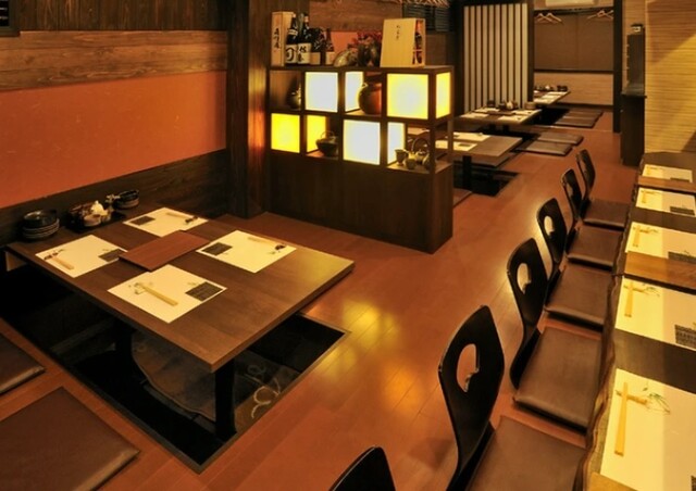 店内は全席掘りごたつ席となっており、隠れ家空間の中でゆったりとした時間を過ごすことができる。宴会や友人同士でのカジュアルな飲み会にも利用しやすい雰囲気となっている。